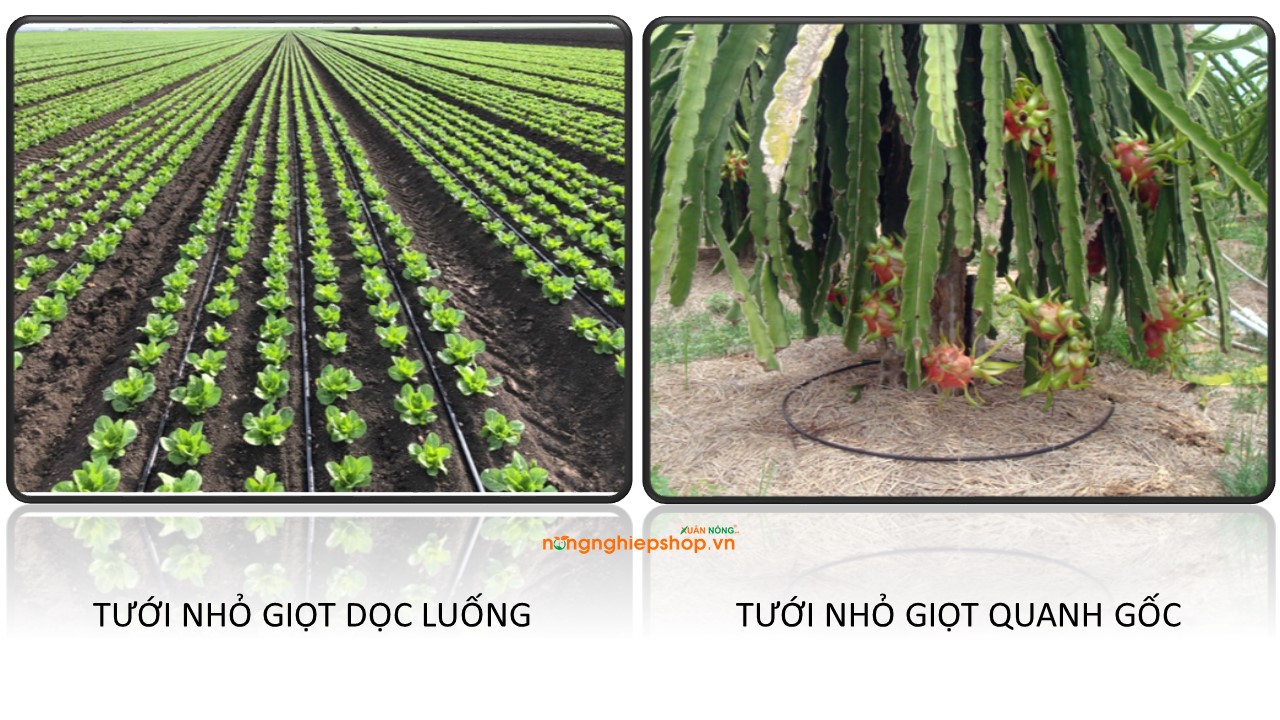 Bạn có thể áp dụng hai hình thức tưới nhỏ giọt là: tưới nhỏ giọt dọc luống và tưới nhỏ giọt quanh gốc.