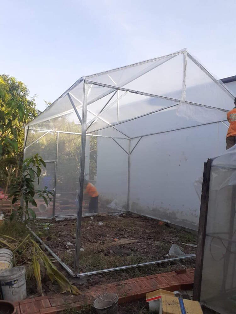 - Phần khung cho nhà màng mini sẽ so nhiều lựa chọn để bạn cân nhắc. Bạn có thể dùng khung sắt, khung gỗ… Còn với phần mái có thể dùng mái với chất liệu nilon.