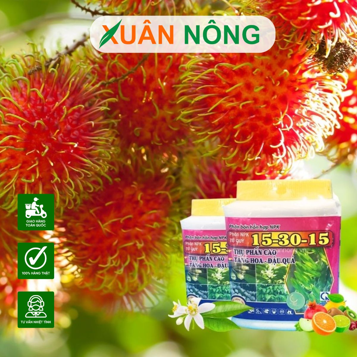 - Kali (15%): Tăng sức đề kháng, nuôi dưỡng trái, chống rụng hoa rụng quả.