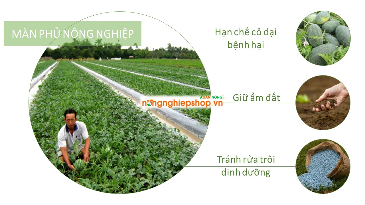 Bà con nên dùng màng phủ nông nghiệp cho cây dưa hấu nhằm hạn chế cỏ dại, bệnh hại. Màng phủ nông nghiệp còn có tác dụng giữ độ ẩm cho đất, tăng nhiệt độ của đất giúp bộ rễ cây phát triển tốt, hạn chế việc phân bón bị rửa trôi hoặc bốc hơi.