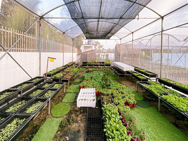 - Phần hông xung quanh nhà kính được che phủ toàn bộ bằng màng polyethylene.