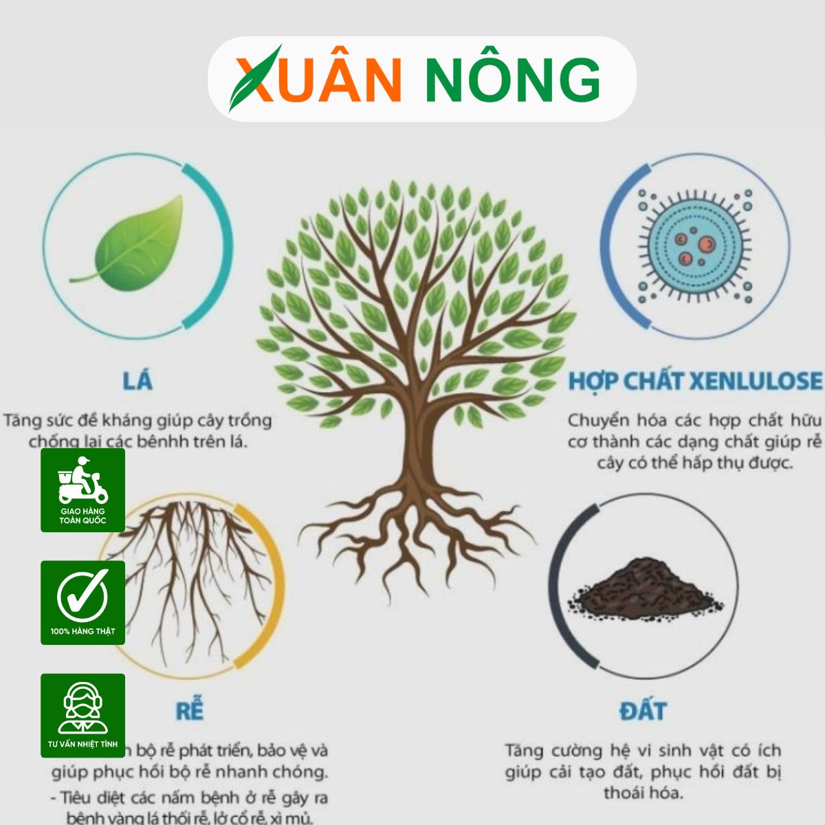 Nấm Trichoderma tạo ra nhiều loại enzym sinh học như cellulase, chitinase, xylanase. Những enzym này giúp phân giải hợp chất hữu cơ khó tan, từ đó cây dễ dàng hấp thu dinh dưỡng.