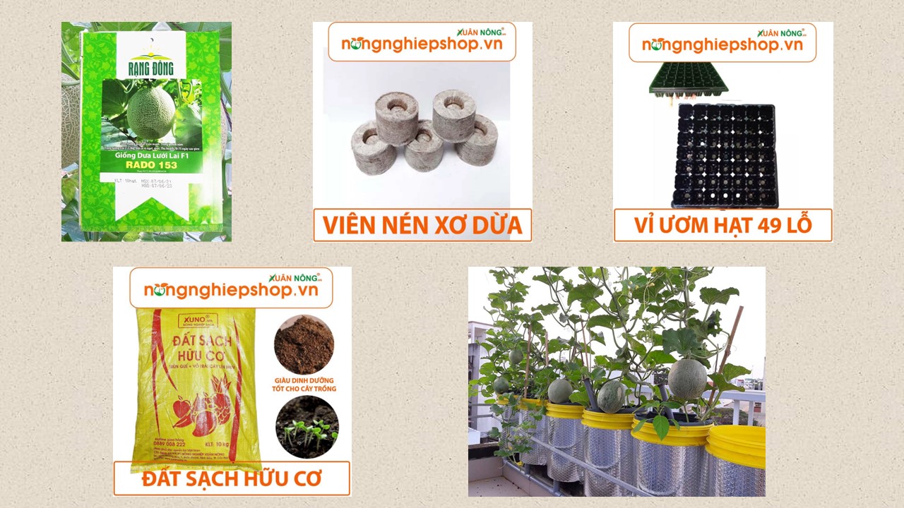 Tuy nhiên với đất sạch XuNo của Xuân Nông, bạn có thể trồng cây trực tiếp giai đoạn đầu mà không cần phối trộn. Đất hữu cơ XuNo có thành phần từ vỏ trái cây lên men kết hợp với phân trùn quế và tro trấu và nhiều vi sinh vật hữu ích sẽ giúp cho việc trồng dưa lưới tại nhà của bạn dễ dàng hơn rất nhiều.