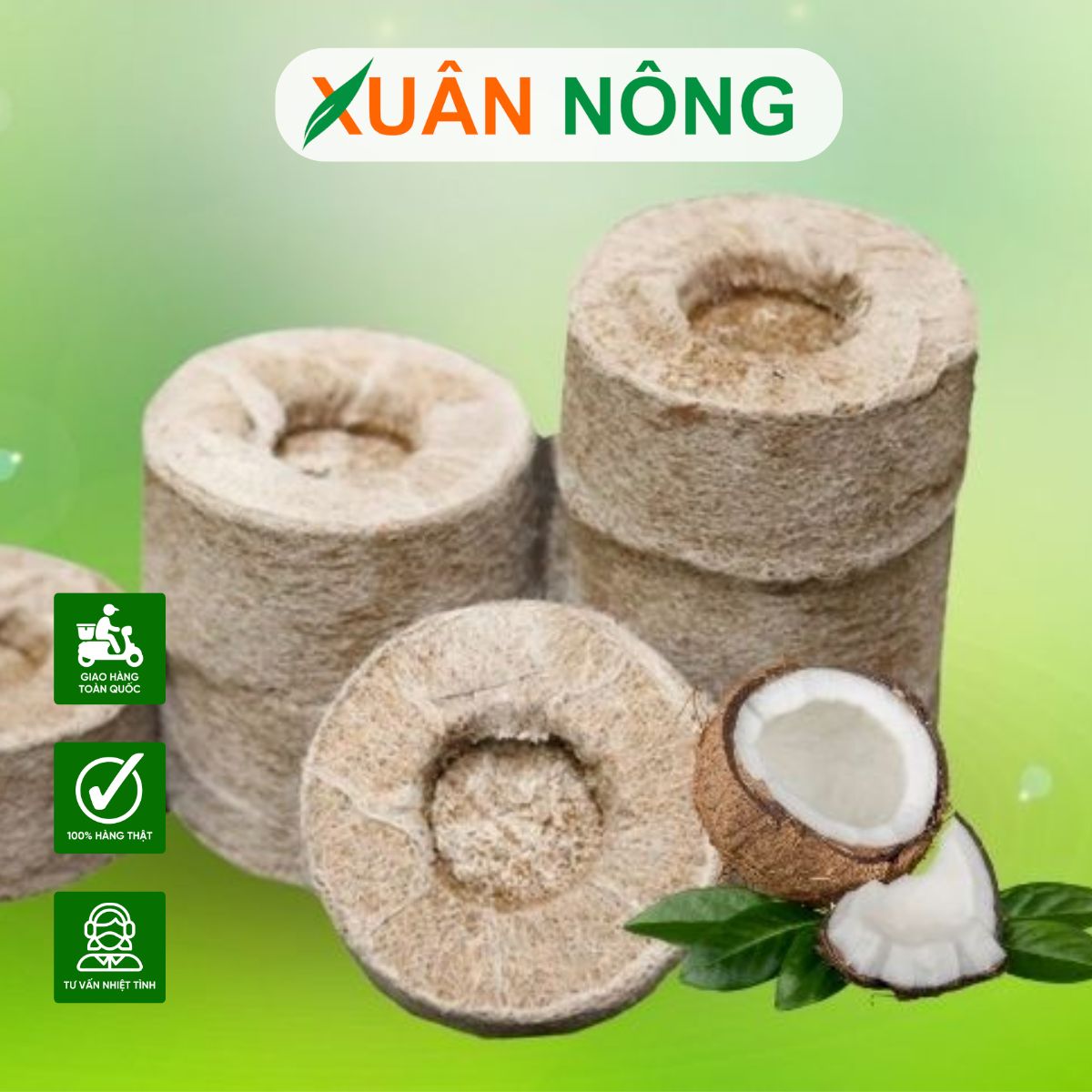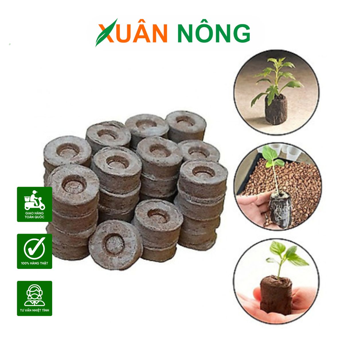 Viên nén xơ dừa (3–4 cm chorau, 5 cm cho cây ăn trái)
