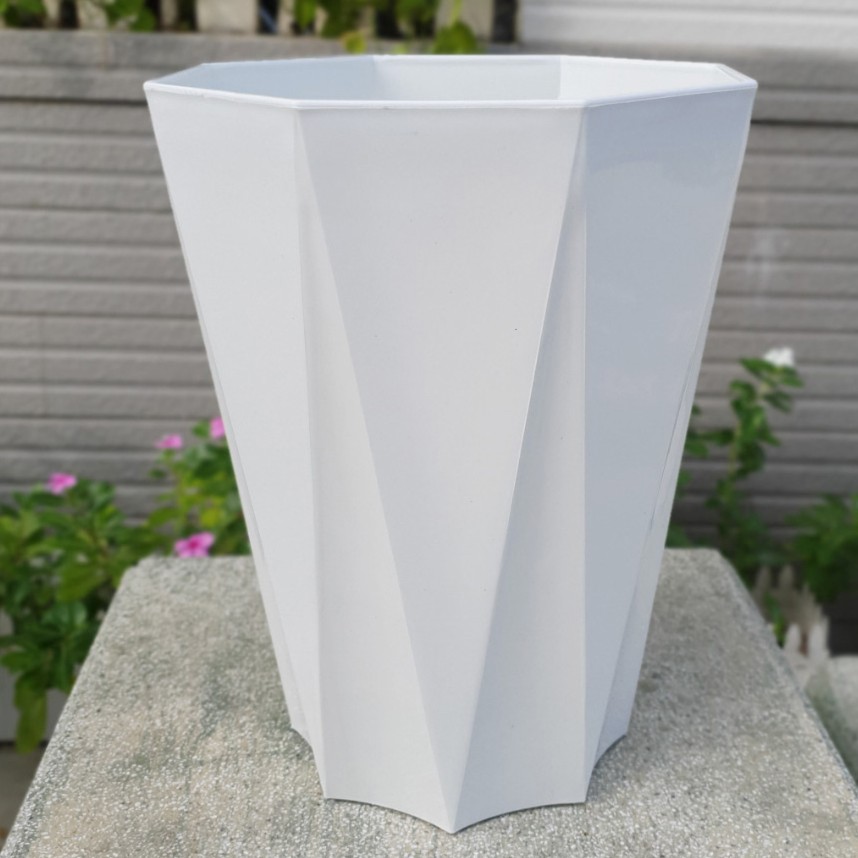 - Thân chậu có hình như các mặt cắt của kim cương, đơn giản, tinh tế mà sang trọng, trang nhã rất phù hợp trồng cây hoa, cây kiểng, cây ăn trái nhỏ...