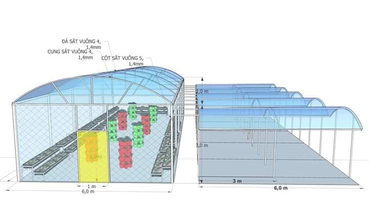 Nhà màng là tổ hợp kết cấu gồm khung giàn, mái được phủ lớp màng pe, xung quanh được bao phủ bởi lưới chống côn trùng tạo thành một thể thống nhất. Chí phí xây dựng nhà màng ban đầu khá cao nhưng lợi ích mang đến không nhỏ đối với bà con nông dân trồng rau sạch