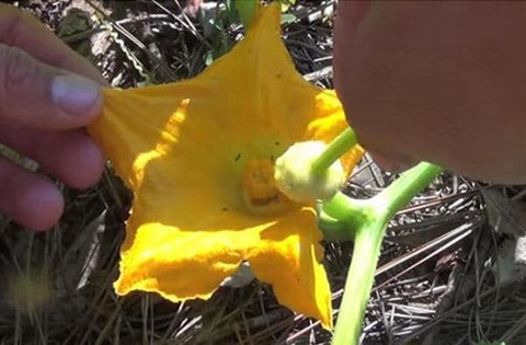 Hoa đực và hoa cái trên cây bí đỏ nở không đồng đều, hoa đực có thể nở trước hoa cái vài ba ngày, mà hạt phấn chỉ thụ tinh được trong vài giờ. Sự thụ phấn của bí đã nhờ vào côn trùng mang hạt phấn từ cây này đến cây khác, nhưng tỷ lệ đậu quả thấp. Nên rất cần thụ phấn bổ sung để tỷ lệ đậu quả 70 – 80%. Do đó, người trồng bí cứ 7 – 9 giờ sáng đi ngắt hoa đực, bỏ hết đài và cánh rồi ấn nhị lên đầu nhụy hoa cái hay dùng que có quấn bông lấy phấn hoa đực quét lên đầu nhụy hoa cái.