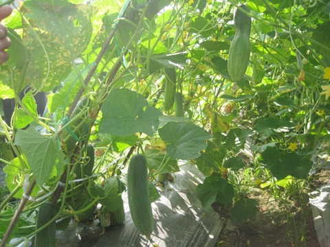 - Chỉnh nhánh, bấm ngọn, hái quả: Khi dưa leo hết dóc ta bấm ngọn để dưa ra nhánh. Trước lúc bấm ngọn 3 ngày bón thúc lần 3: Dùng 3kg urê+3kg Kali bón vào khoảng giữa gốc cây dưa hoặc dải đều trên mặt luống. Mỗi nhánh dưa chỉ để 3 lá, sau bấm ngọn nhánh. Những nhánh không ra hoa cũng tiến hành bấm bỏ để dưa ra nhánh khác