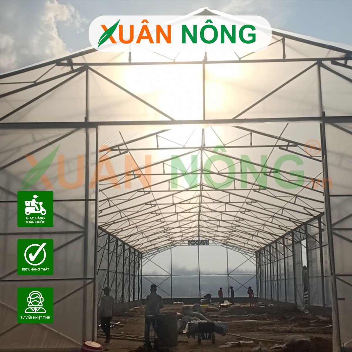 - Vỏ phủ bằng màng PE dày 150-200 micron hoặc tấm polycarbonate trong suốt, truyền sáng tốt, chống tia UV và bền theo thời gian.