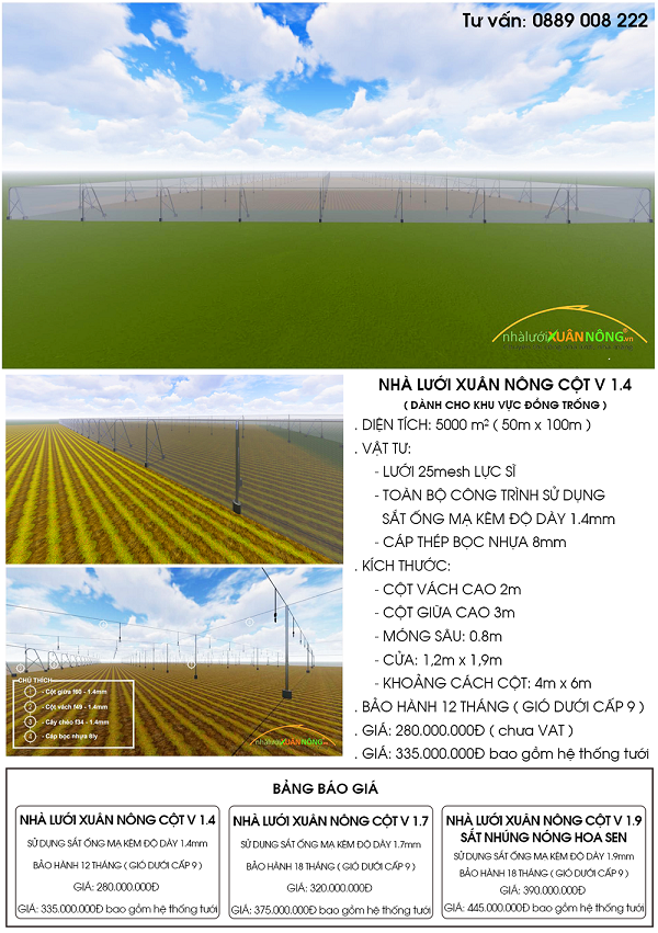 NHÀ LƯỚI XUÂN NÔNG CỘT V 1.4