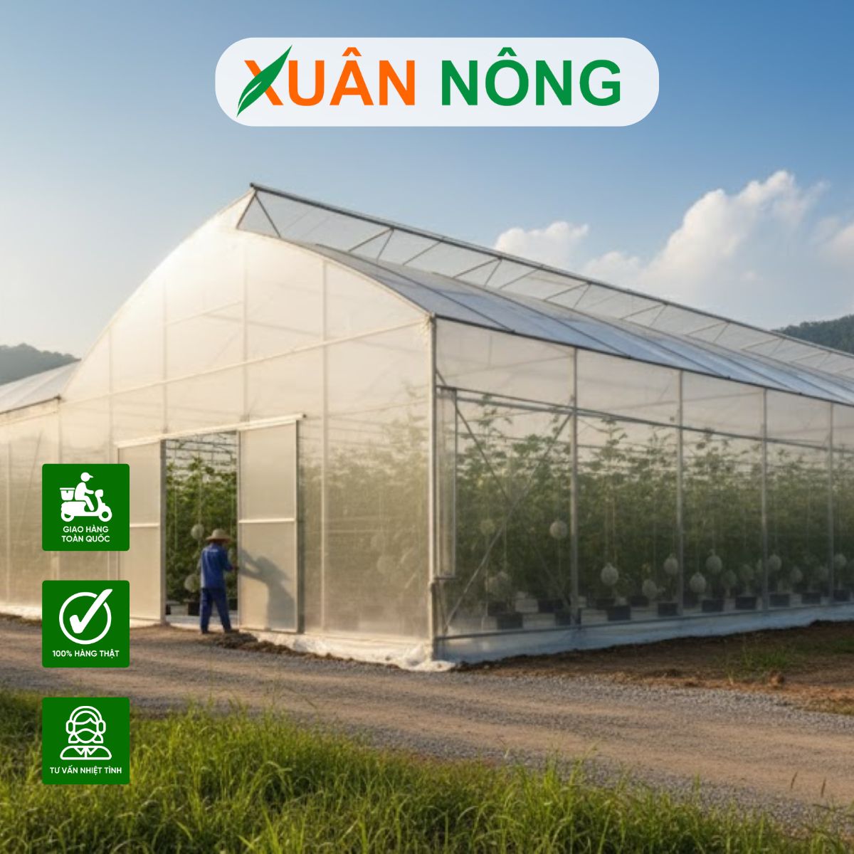 - Màng PE che phủ: Độ dày 150 micron, có khả năng chống tia UV, hạn chế mưa và gió mạnh.