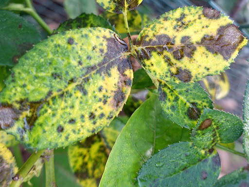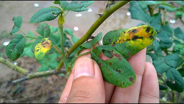 Bệnh đốm đen là loài bệnh phổ biến nhất trên cây hoa hồng, bệnh này thường phát hiện rất muộn, khi thấy vết đốm đen thì là cây đã bị rất nặng rồi, khi phát hiện thấy chiếc lá xuất hiện đốm đen ta nên xử lý kịp thời, khi lá bị đốm đen, lá sẽ chuyển dần sang màu vàng và rụng dần, nếu để lâu thì cây sẽ không còn chiếc lá nào và dẩn tới cây sẽ chậm phát triển đi rất nhiều.