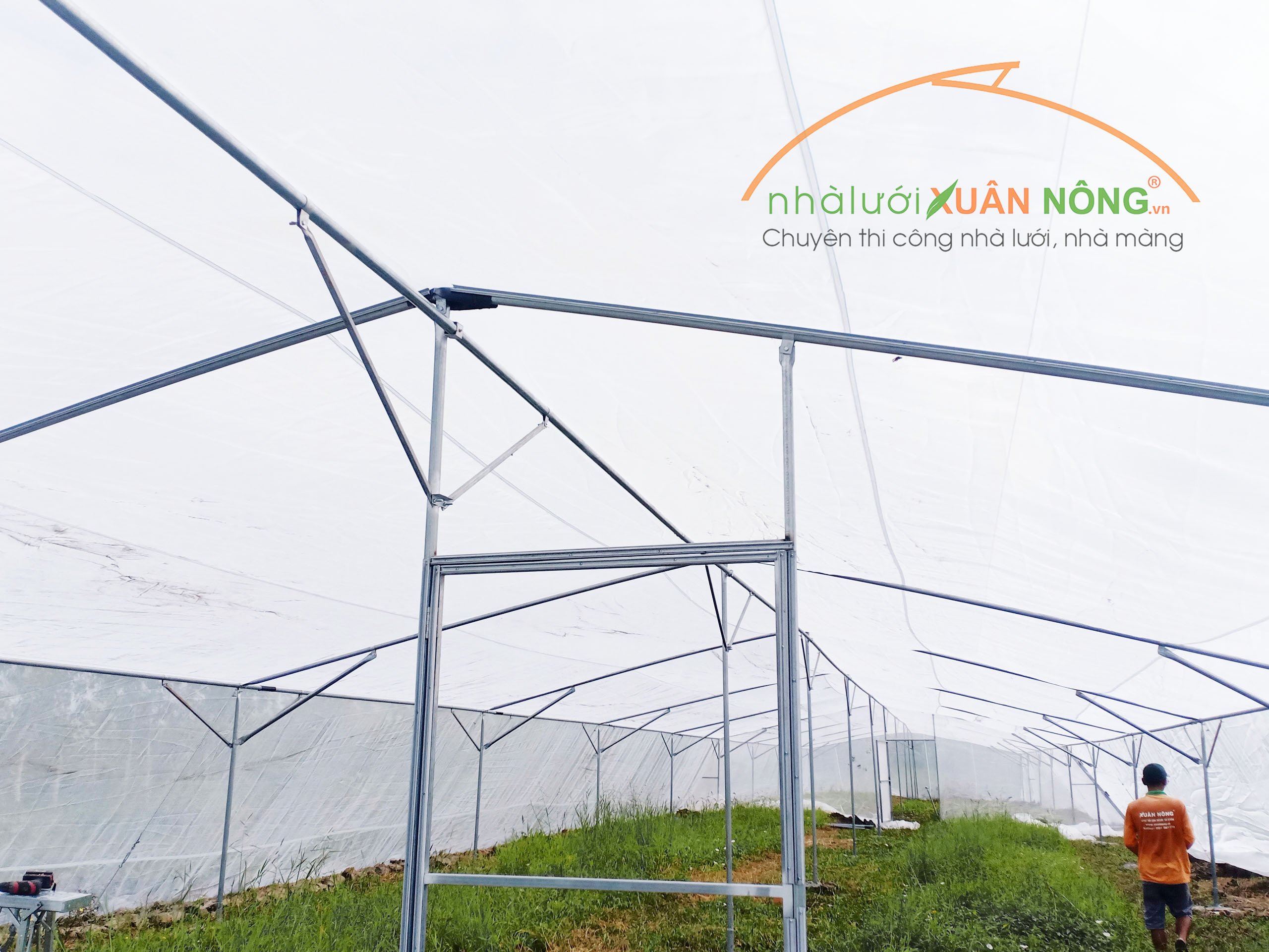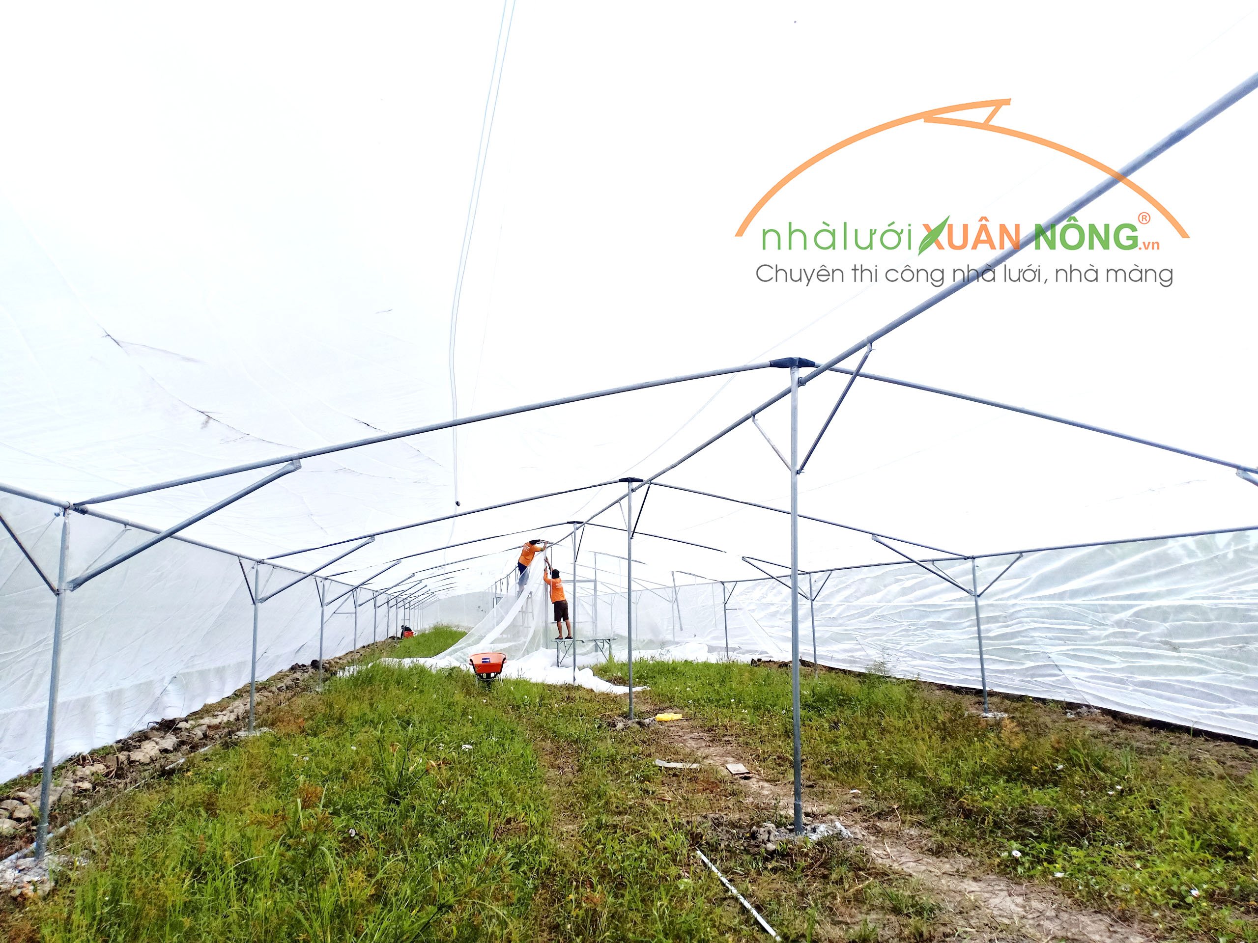 Không nên căng lưới quá thẳng vì căng lưới quá thẳng khi gặp gió mạnh dễ bị đứt lưới. Nên căng lưới dùn dùn để gió thổi vào làm mát nhà lưới hơn.